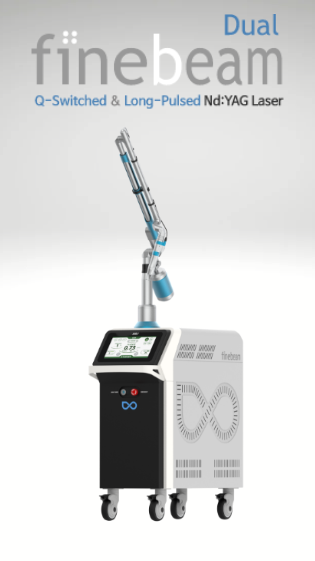 Finebiam Dual – вдосконалена лазерна система Nd:YAG, що працює на основі якісної імпульсної технології. Оснащена двома режимами – Q-Switched та довгим імпульсом – вона ідеально підходить для омолодження шкіри, лікування пігментації та догляду за тілом.