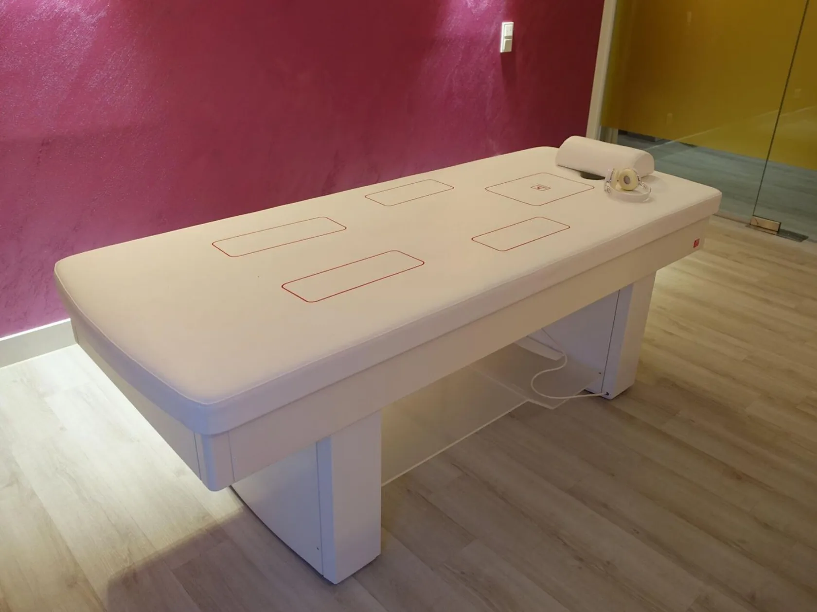 Масажне ліжко Serenity створює акустичну вібрацію, яка покращує кровообіг, сприяє ефективному дренажу рідини та токсинів і дарує відчуття глибокого розслаблення.