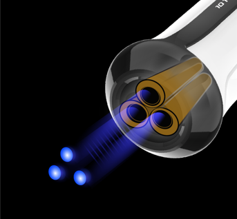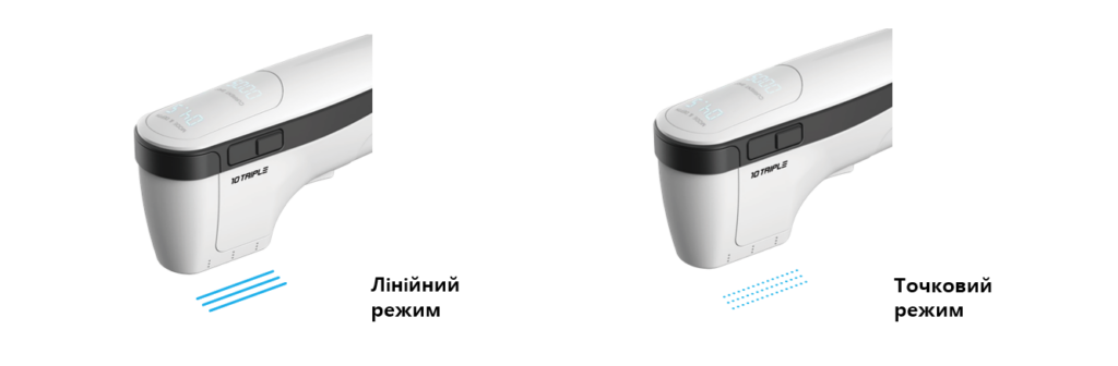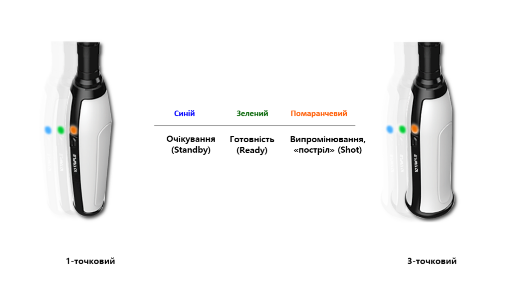 Картридж обладнаний трьома синхронізованими випромінювачами, завдяки чому енергія кожного «пострілу» випромінюється у 3 точки одночасно! Це робить процедури ефективнішими та швидшими.