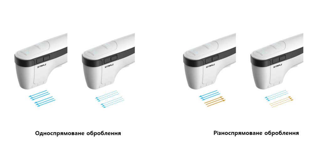 Три лінії ультразвукової коагуляції за один імпульс — швидше покриття зони та виражений ефект підтяжки.